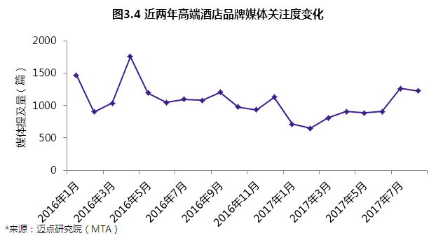 近兩年國內(nèi)媒體對酒店業(yè)的關(guān)注整體偏低,而相對最受媒體關(guān)注的高端酒店品牌也并沒有突出表現(xiàn)。酒店業(yè)是相對垂直的領(lǐng)域,因此關(guān)注的媒體也多僅限于行業(yè)專業(yè)媒體上。