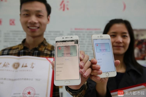 市民代表領(lǐng)取了全國首張微信身份證“網(wǎng)證”。南都記者陳志剛攝