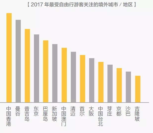 2017年最受歡迎的15 個境外城市全部地處亞洲,其中,日本京都、馬來西亞沙巴和吉隆坡首次上榜。