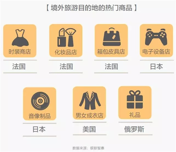 在法國的時裝商店、化妝品店和箱包店的人均消費最高,日本必買的是電子設備和音像制品,不能錯過的是美國的快時尚男女成衣店,去俄羅斯的話則必須去禮品店看看套娃、巧克力和伏特加。