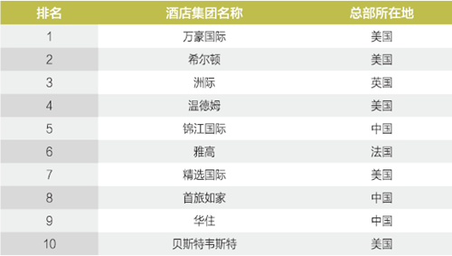 2016年“全球酒店集團10強”中國本土品牌占三席