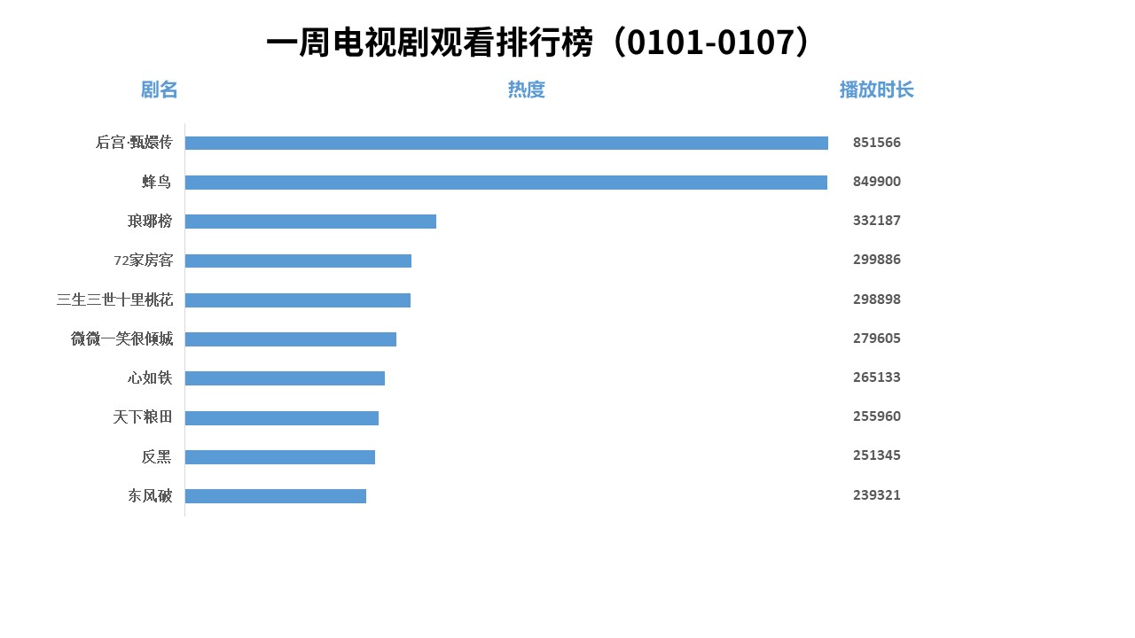 新聞來源:宏輝智通 發布日期:2018-01-18 瀏覽次數:3195【流媒體網】消息:廣東IPTV發布1月1日-1月7日電視劇、電影、綜藝、卡通節目觀看排行榜。電視劇觀看排行榜前三位是《后宮·甄嬛傳》、《蜂鳥》、《瑯琊榜》; 電影觀看排行榜前三位是《羞羞的鐵拳》、《銀翼殺手2049》、《瘋狂動物城》;綜藝觀看排行榜前三甲是《快樂大本營》、《奔跑吧兄弟4》、《蒙面唱將猜猜猜2》;卡通觀看排行榜前三位是《熊出沒》、《兔小貝兒歌》、《汪汪隊立大功》。