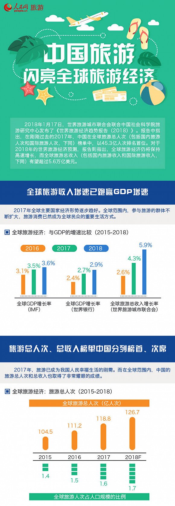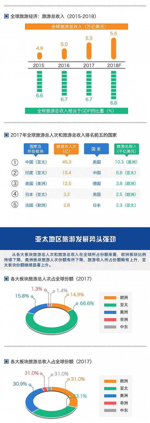 新聞來源:宏輝智通 發布日期:2018-01-25 瀏覽次數:36122017年,中國在全球旅游總人次榜單中,以45.3億人次排名首位。2018年,全球旅游總收有望超過5.6萬億美元。