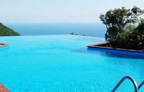 而三亞鳥巢度假村的泳池,可在空中俯瞰亞龍灣全貌,二者雖有百米落差,但是無邊泳池的效果更立體,更震撼。估計在游泳池里的人,不是為了游泳,而是自拍!