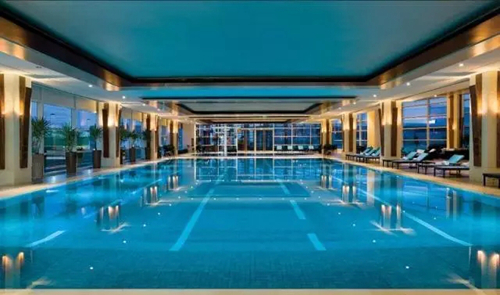 酒店5樓的康體空間,除去25米室內恒溫泳池,還帶有一個小溫泉池以及0.9米水深的兒童戲水池。泳池區外還配有室外小型兒童樂園,里面提供秋千、滑梯、蹺蹺板以及兒童攀巖墻等設施。
