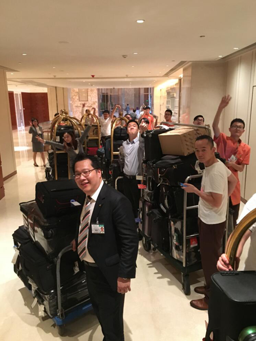 9月3日凌晨,110輛奔馳轎車,50輛寶馬轎車載著沙特代表團,還有15輛大卡車(每輛載重8噸)的生活物品,大至床墊、電視機,小至牙刷、垃圾桶,浩浩蕩蕩從沙特來到杭州。加上之前先期到達的8輛大卡車,此次G20峰會沙特代表團共有23輛卡車,共計184噸貨物。貨物和數量如此之多,對酒店前廳和禮賓服務是一次重大考驗。元氣滿滿的40位酒店員工,10輛板車,10輛行李車,來回40多趟,將所有物品搬運到各指定場地。相關負責人介紹,“具象一點地說,當天40人的微信運動里,步數都高達20,000到30,000步。”