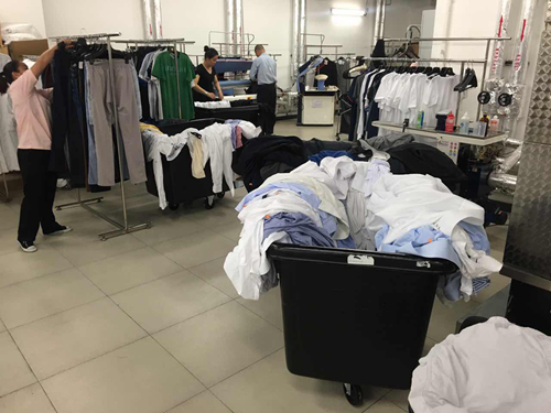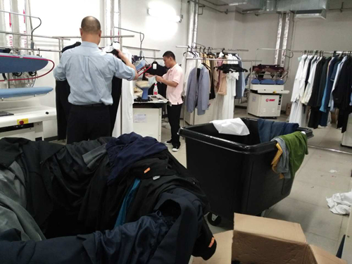9月3日與9月4日,酒店的洗衣房迎來了自開業以來的巔峰時期,僅這兩天的收益就到達了平時1個月的水平。據悉,沙特代表團在酒店期間,曾經一間房有76件衣物需要清洗熨燙,堆放了整整一車。700多名代表共2000多件衣物被送至洗衣房。7個人24小時通宵工作,2臺機器16小時不間斷運轉,房務部、前廳部、人力資源部的同事都參與進洗衣這項任務。相關負責人對記者表示,“夜間本來應該安靜的洗衣房,在G20 期間真的是熱鬧非凡。洗衣房工作的流水線變得浩浩蕩蕩,從收客衣—清點—打標簽—清洗—熨燙—折疊—衣物歸檔—送進房間,好不壯觀!”