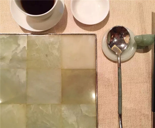 上海四季酒店的中餐廳四季軒的私人雅間使用玉器器皿做全套餐具,其中做筷架的小魚兒栩栩如生,精致可愛。