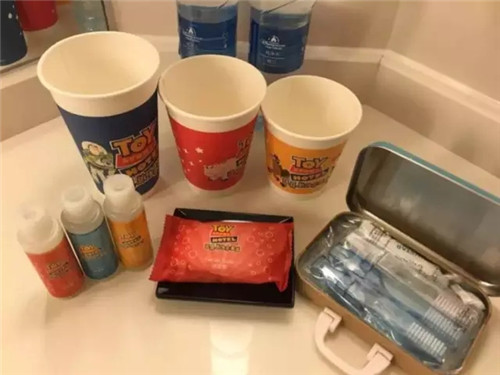 譬如上海迪士尼玩具總動員酒店的洗漱包,這種明確送給客人的可以拿。