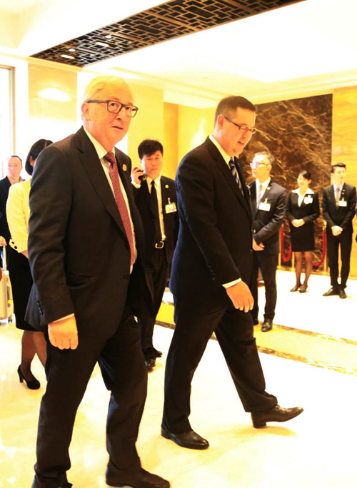 2016年9月4日上午11點,雅高酒店集團大中華區(qū)區(qū)域餐飲總監(jiān)/山東區(qū)域運營總監(jiān)柯瑞文、杭州索菲特西湖大酒店總經(jīng)理范斯先生和酒店業(yè)主代表/副總經(jīng)理竺麗萍女士,于酒店正門口熱情迎接歐盟委員會主席讓-克洛德•容克。