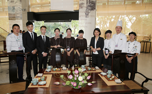 在此次G20峰會的接待上,索菲特獻上了一場別開生面的“夫人茶歇”盛宴。9月5日,國家主席習近平夫人彭麗媛邀請出席二十國集團領(lǐng)導(dǎo)人杭州峰會外方代表團團長夫人參觀中國美術(shù)學院,領(lǐng)略中國文化。隨后,彭麗媛和來賓們來到美術(shù)館欣賞“雨過天青”青瓷藝術(shù),感受中國陶瓷美學之最高峰,品味“杭州韻味,西湖元素”之中西式茶歇。