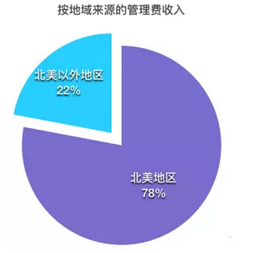 從地域分布來看,2015年來自北美地區的收入占了總收入的78%。