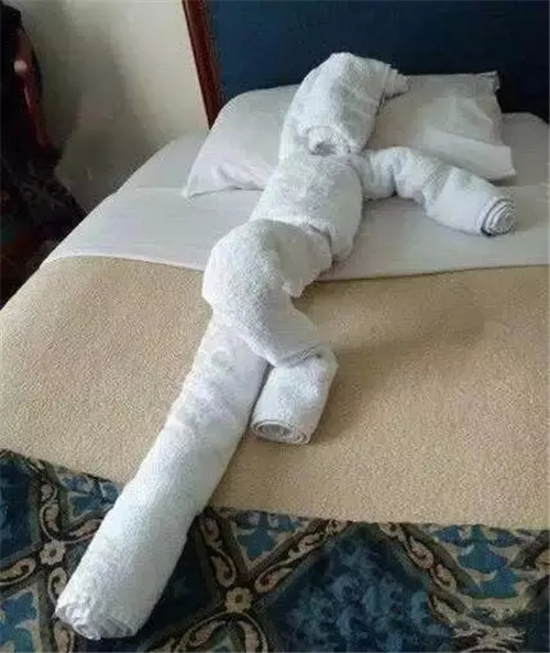 不過,要是單純的酒店遇上客人的奇葩要求時,那畫面也是沒誰了,你一定想不到酒店毛巾還能這樣玩