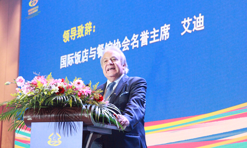 國際飯店與餐館協會主席加森·艾迪為開幕致辭。