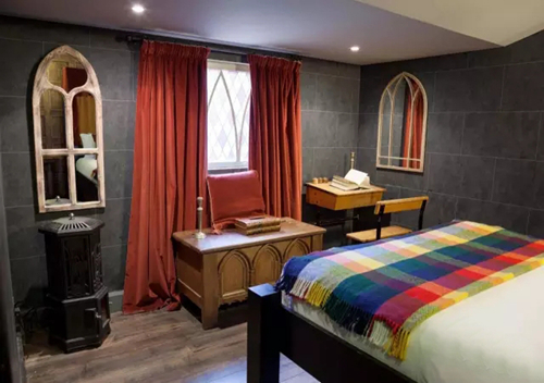 雖然這間酒店與羅琳的創(chuàng)作沒有關(guān)系,但其房間的靈感來源于《哈利·波特》小說的內(nèi)容,仿制“霍格沃茨魔法學(xué)校的臥室”推出了霍格華茲主題套房。