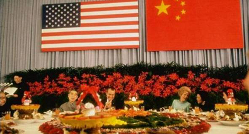 1972年,尼克松訪華,中美上海聯合公報發布,宣布中美關系走向正常化。周恩來總理在北京飯店設宴招待總統夫婦。