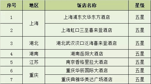 相較之下,2016年酒店掛牌上星數量則寥寥無幾,輝視網從中國旅游飯店業協會官網獲悉,截止目前,2016年全國掛牌五星級酒店僅7家,遍布于上海、湖北、湖南、江蘇、重慶等地,具體名單如下: